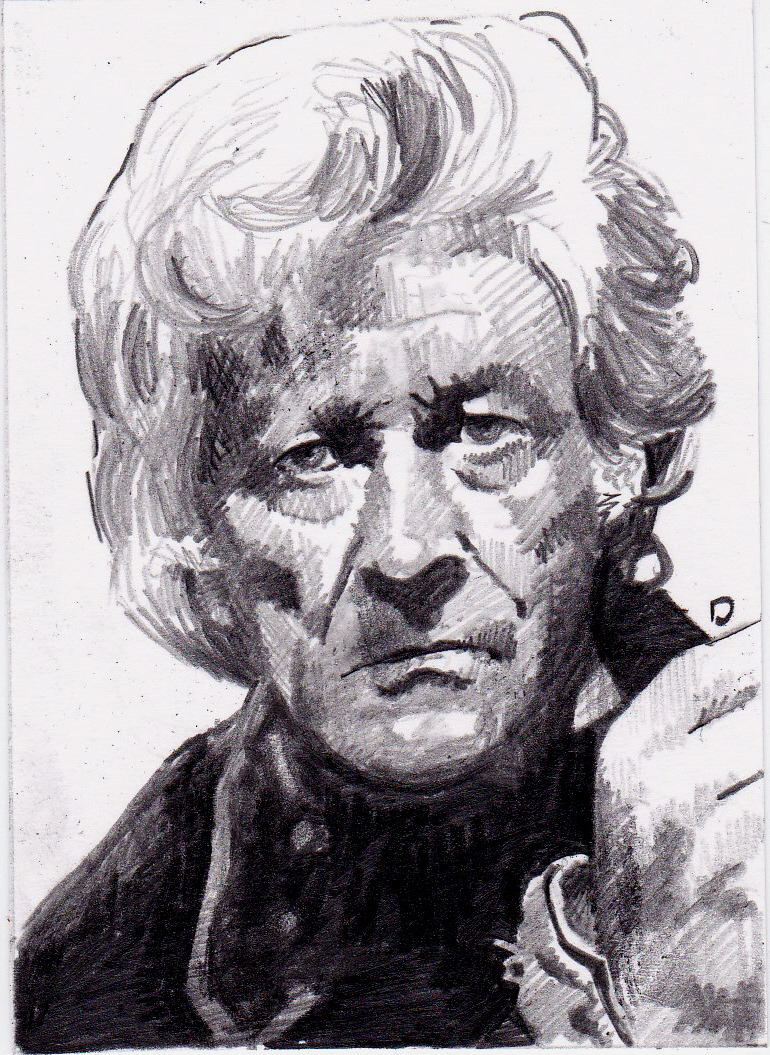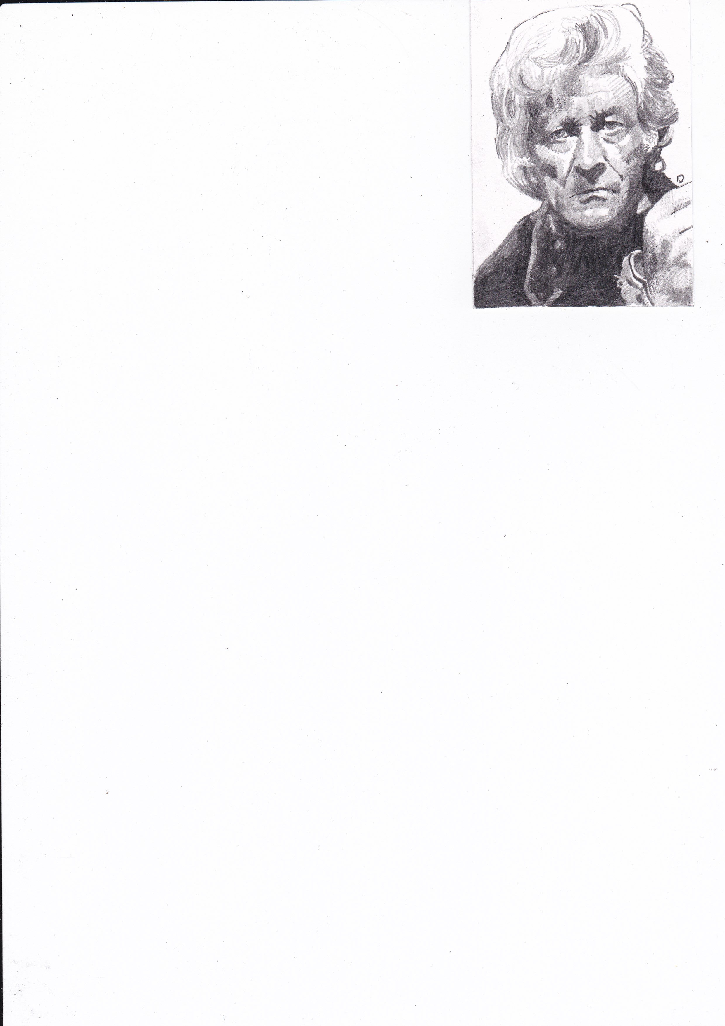 This meant that what I sent out was literally black and white, and not the grey-scale of a pencil drawing. Oops. Luckily, he is a very nice bloke and just laughed it off when I sent out the ‘corrected’ image. You see when you scan in the pencil images I have to adjust the contrast in order to see the image properly. I’m not sure if it my scanner but it seems to want to flatten out the contrast. A small tweak and it is fixed. So from: