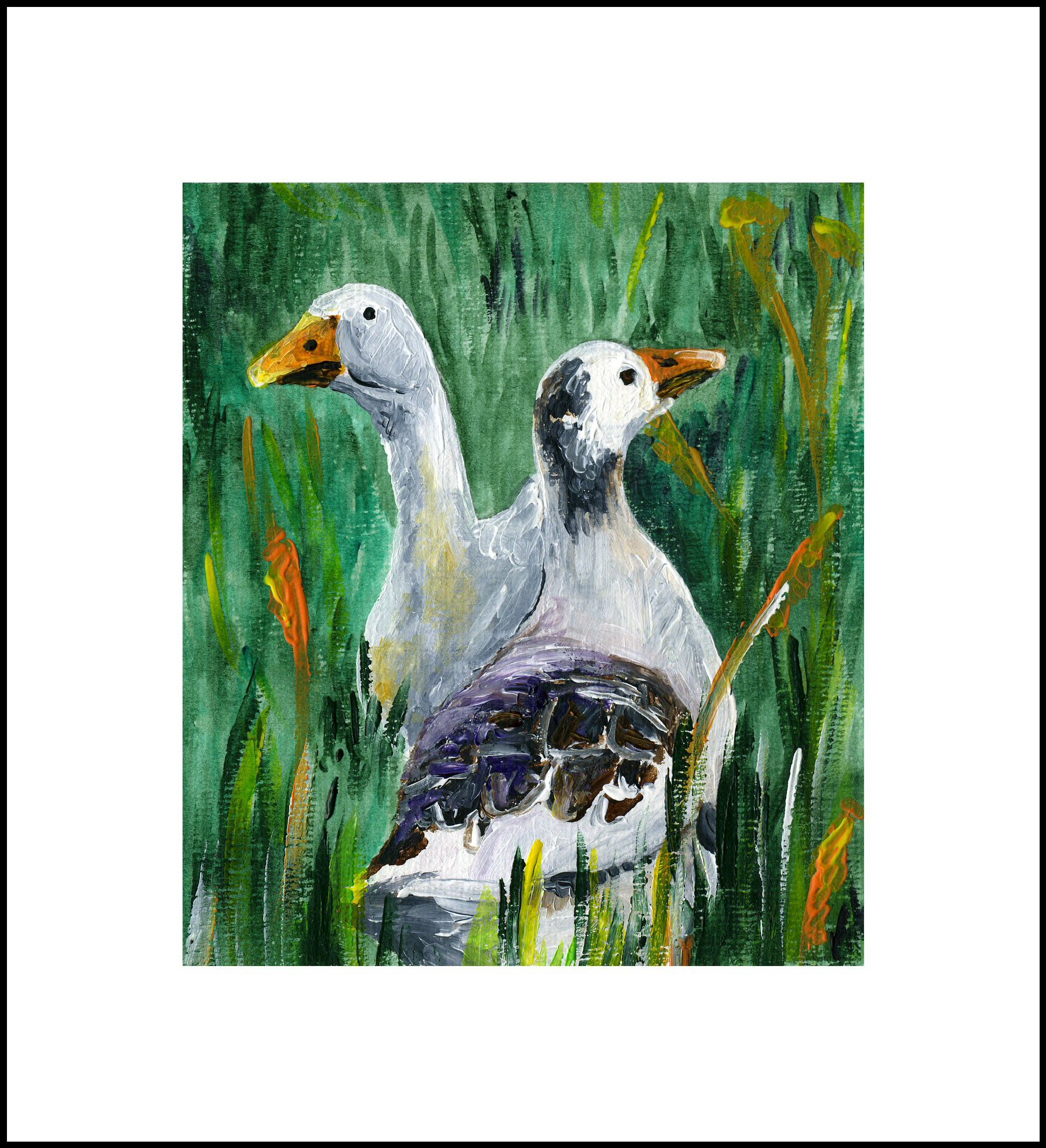 Sorry – I don’t have any turkey paintings so here is a minature of two geese. The one at the back is called Boris and the one at the front is Missy. They are our breeding pair and are now ten years old and still going strong.