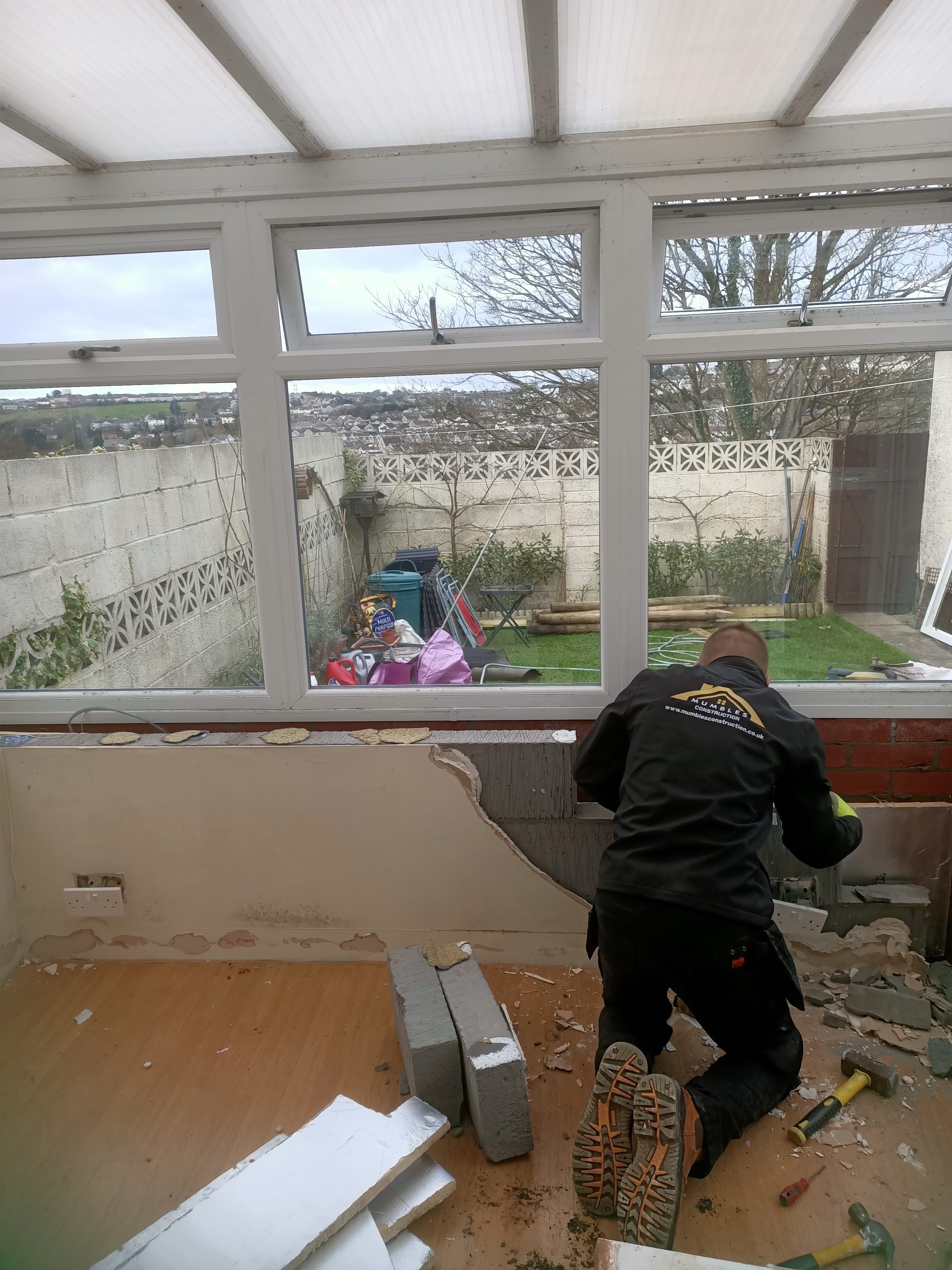 The wall is gone and they have started on the conservatory…