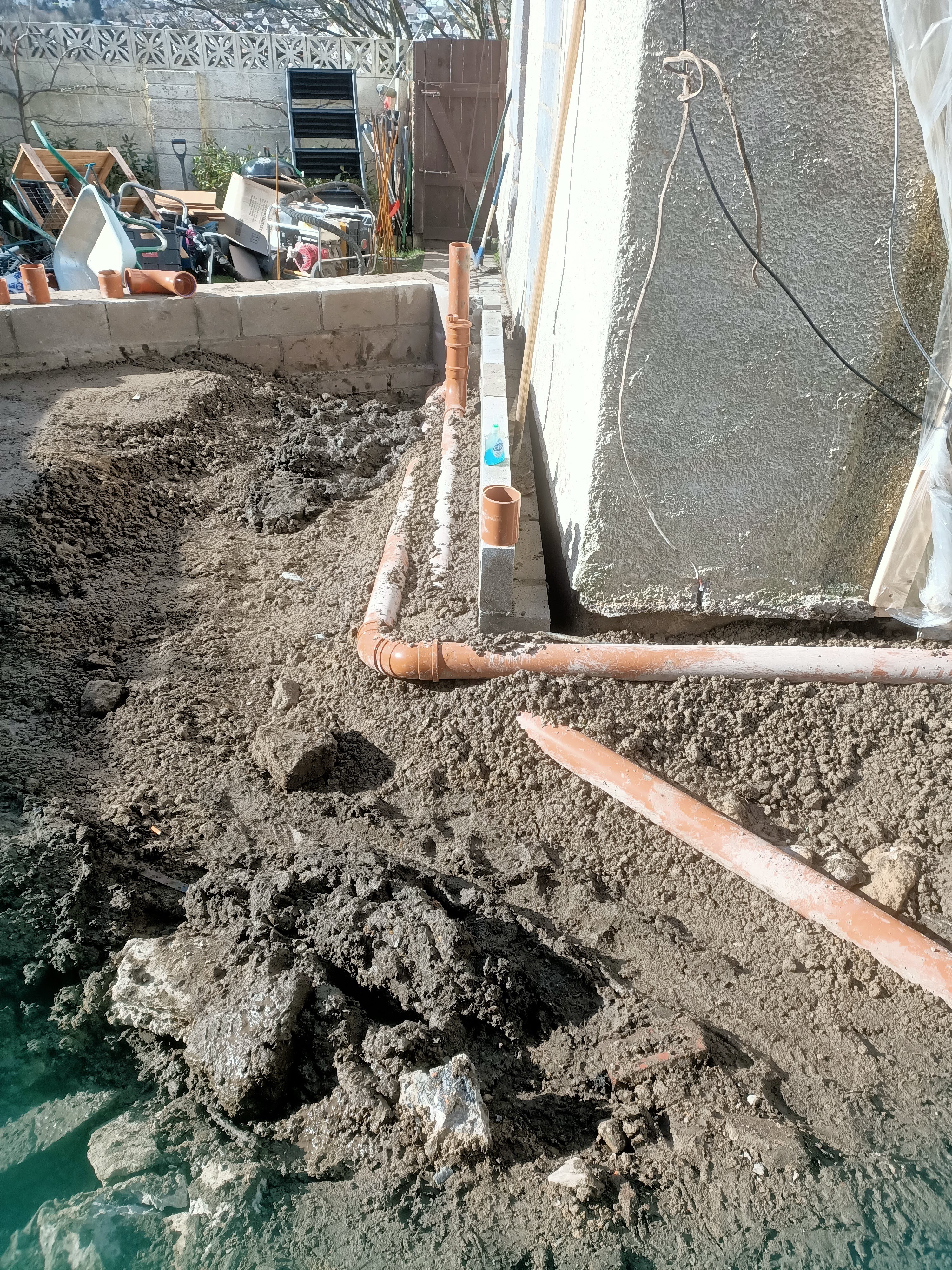 So, the build has been progressing, but an awful lot has looked the same except for a bit of piping. But the real infrastructure has been going in. Now we have our floor level and all the drainage in. It is all pretty amazing. Next week the walls start to go in.