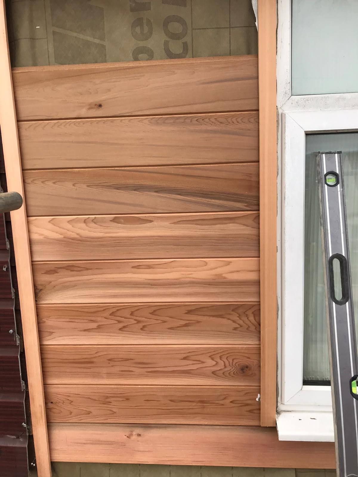 The dormers are being clad as well. The wood is so beautiful. It is amazing how lovely it looks. I think Monday the scaffolding comes down so I can get better pictures.