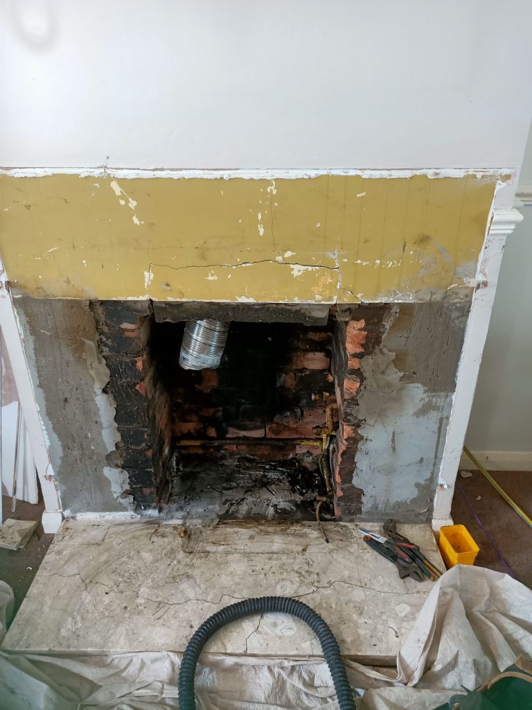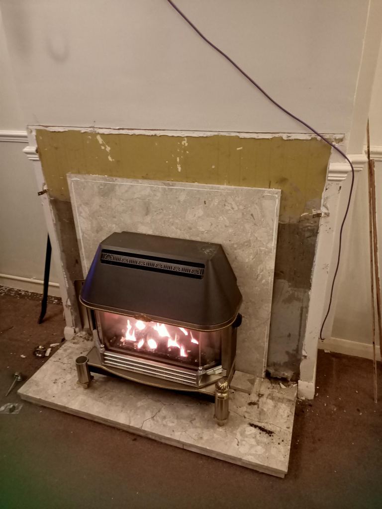 Since the circulation pump on the central heating went we have been completely reliant on that fire. There has been no other source of heating and with the steel in place for the frame and consequently a massive hole in the back of the house, it has been chilly. So, we have had the fire on all the time and are living in the front room. The rest of the house being too chilly. It is always a possibility that the fire isn’t working as well as it should. It is from the 1960s.