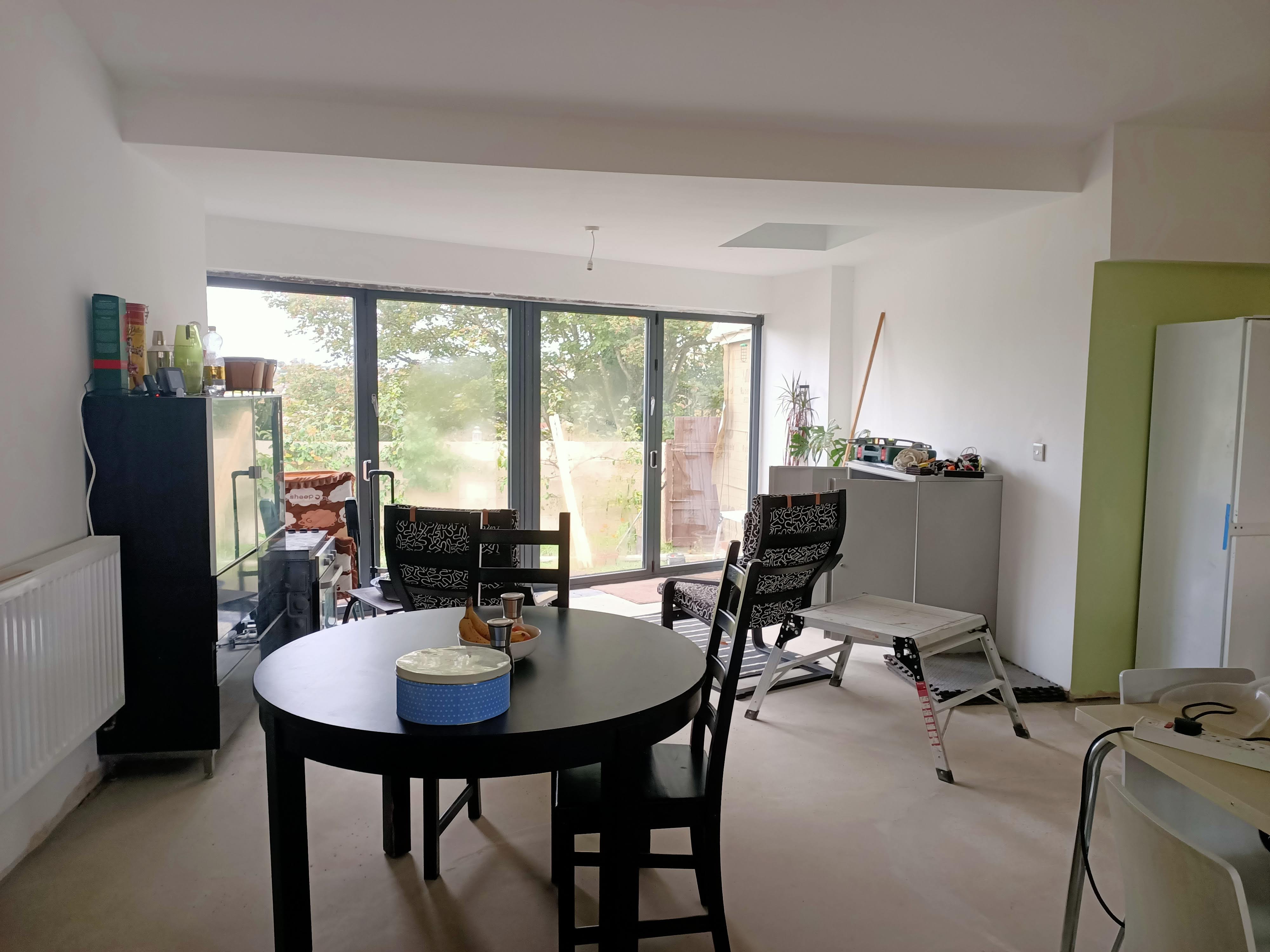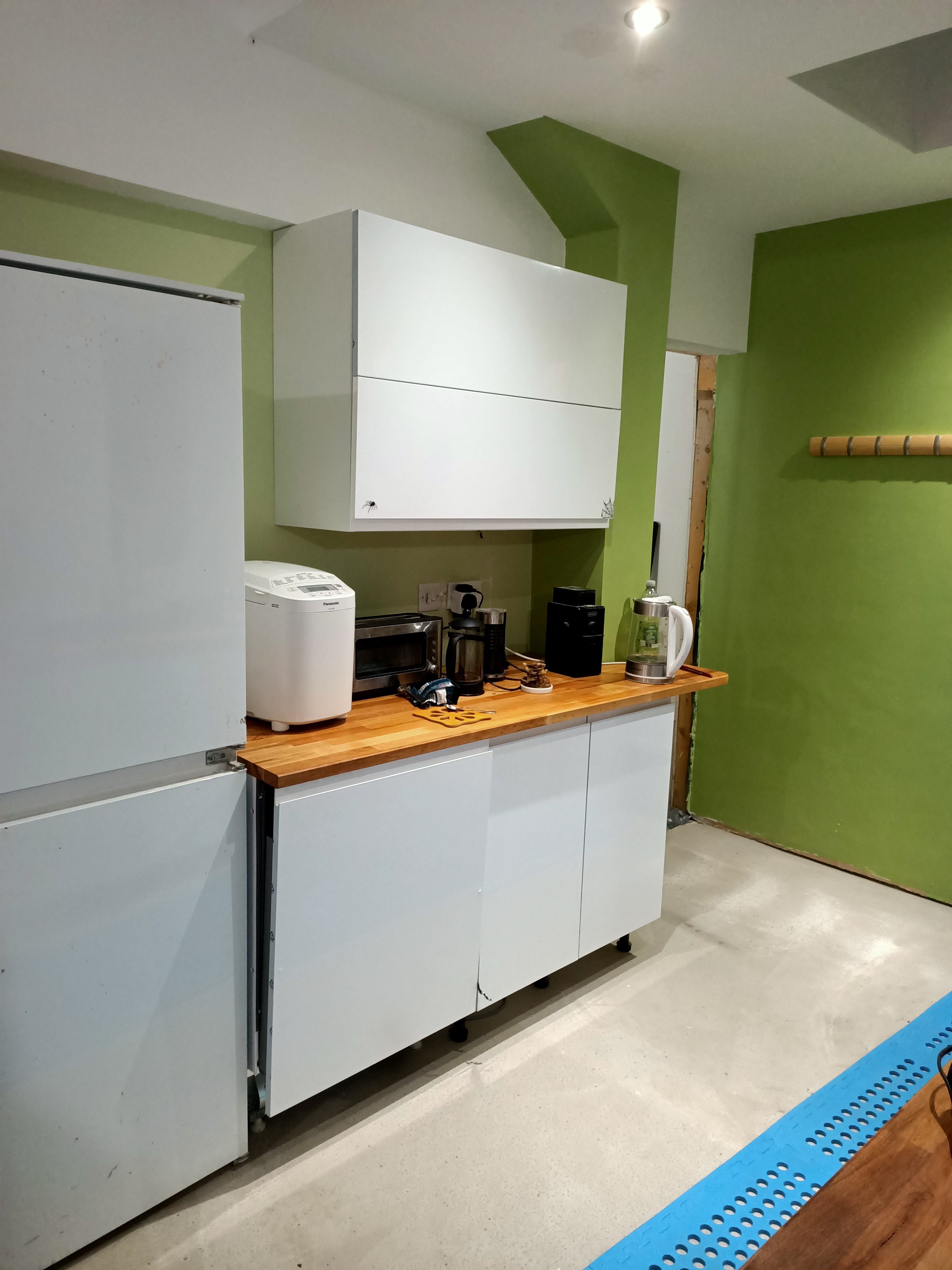 We are finally getting to decorate the old house and the inside of the build is pretty much complete. We are waiting for the doors, window, cladding and one final roof. Inside we have the garden room, the kitchen and dining room, the living room and the library, although on the latter we haven’t got the bookcases in yet. We are wanting to paint the area before we bring them back in. They are currently residing in our son’s garage.