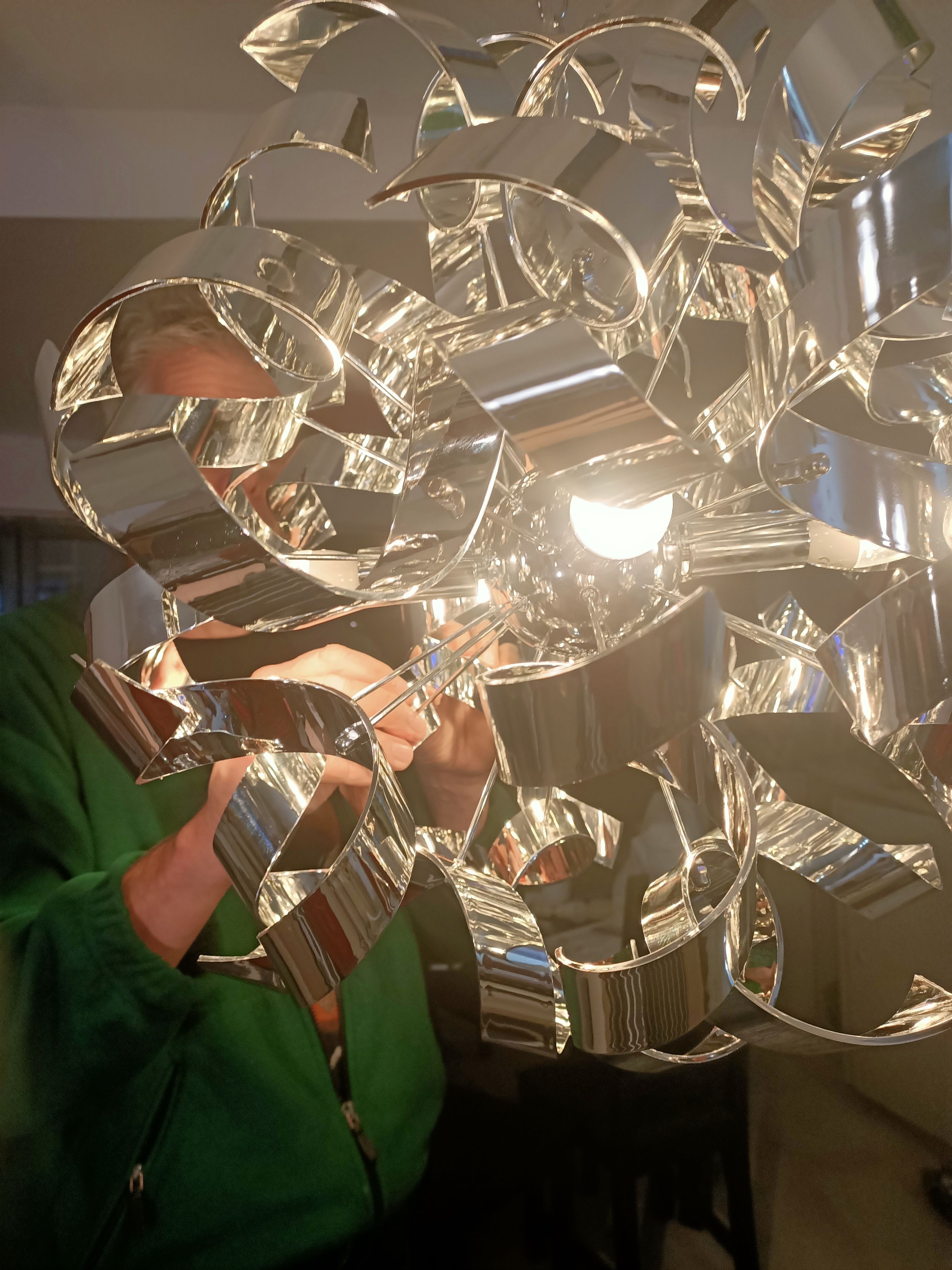 The rest of the house has surprisingly low ceilings, or maybe not so surprising as it was built in the 1960’s. So there is only one spot for a chandelier. We looked at dropped ones and industrial ones. Coloured and non-coloured. Smart and not smart. Crystals and wood. Metal and plastic. Patterned and cut-outs… My head is still spinning from it all.