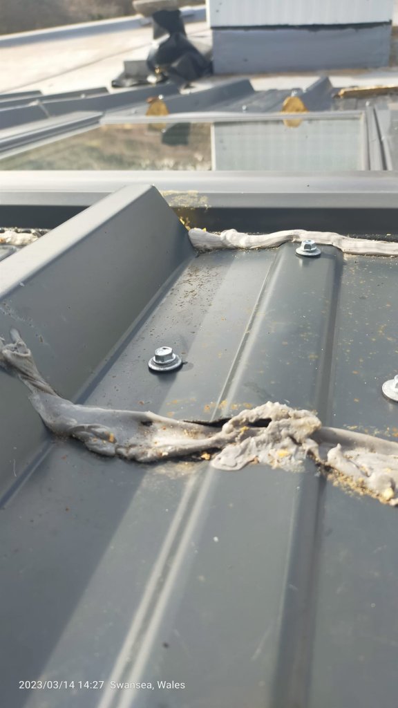 Did we pay? Yes, but when Miles took that payment he left Jay and his friend as on the job to go get materials. Of course that was the last we saw of Miles and Larry/Lewis Cash, – and Jay never got paid for the second day, at least he says he hasn’t. If they had made a good job we would be singing their praises but after they had gone we went and had a look. No way had they proved the job properly with a pressure washer. Lumpy mastic with holes and screws into expanding foam. The skylights sealed shut or fouled with metal sheet. A total mess, with shit all over the roof. We might just as well have burnt that money.