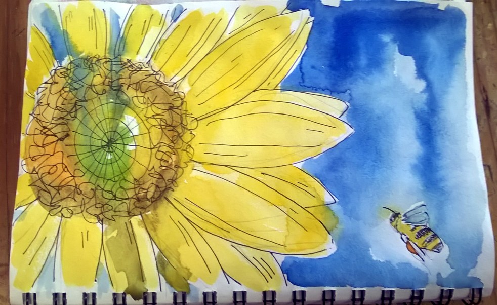 The prompt today was Sunflower... Pen and ink and watercolour - 30 minutes